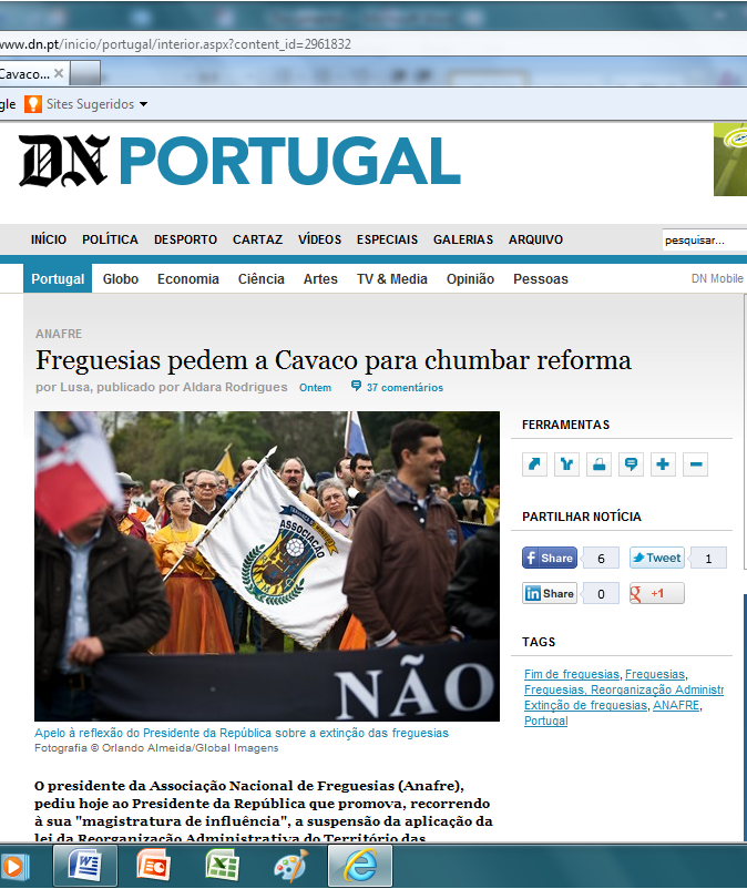 | Edição online do DN. Curiosamente, na imagem pode ver-se a bandeira da Associação de Travanca do Mondego |